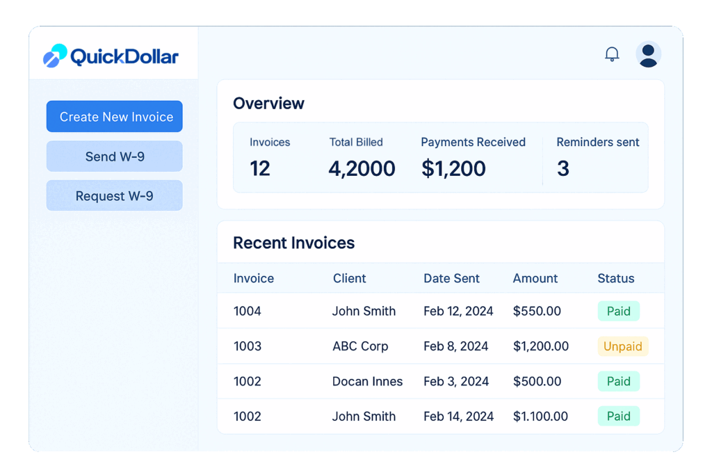 Attach a W-9 automatically with every invoice. Save time, stay compliant, and keep clients happy by giving them everything they need upfront.