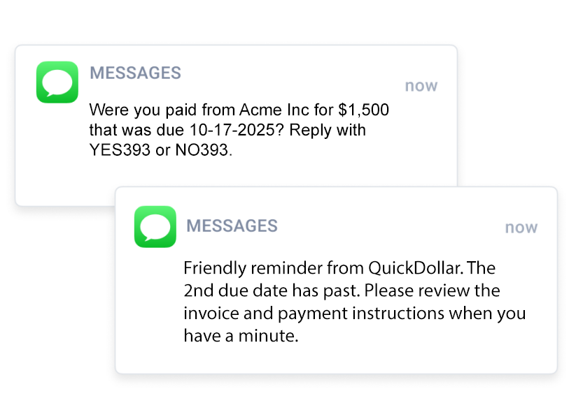 Deliver invoices straight to your client’s phone. Automatic reminders make sure you get paid on time — without the awkward follow-up.